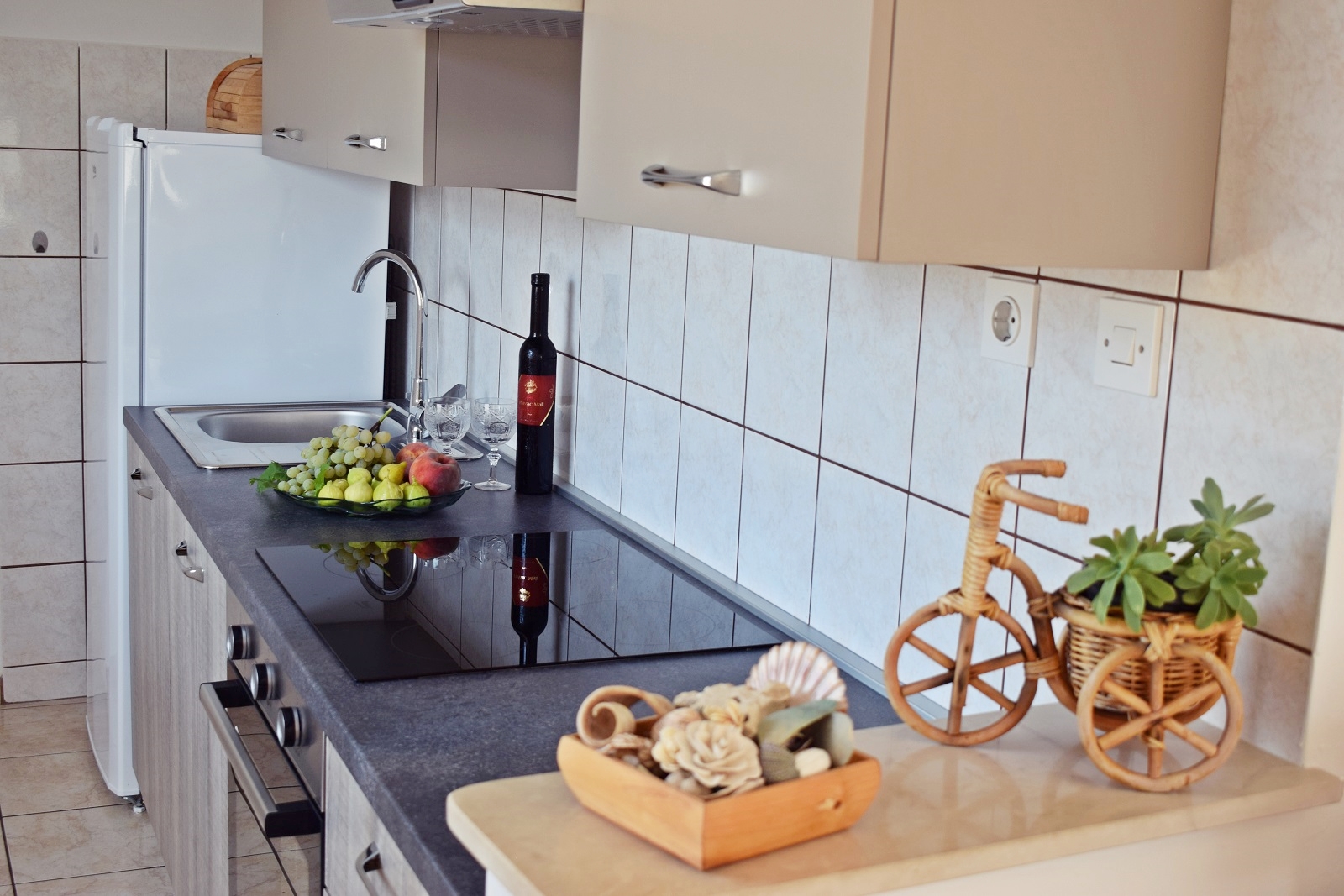 Find Out MoreApartment Sara is a spacious apartment with two rooms, living room and completely furnished kitchen. There is a bathroom (with toilet and shower) as well as another separate toilet. Enjoy big balcony with the garden- and partly sea-view. Rest calm about the heat, since you have an air conditioner included in the price.